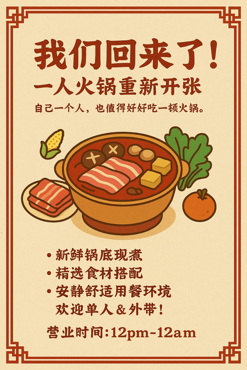 一个人呀 。火锅外卖 单人火锅专业户,5分钟出单送到家。现在下单享有运费折扣